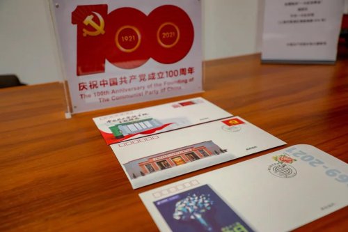 揭幕仪式上,中共一大纪念馆和上海市分公司共同发布了诸多红色系列的文创品,如《中国共产党第一次全国代表大会纪念馆》纪念邮折、《党员政治生日立体贺卡》、中国共产党诞生地主题邮局创意铁质邮筒和钥匙扣等。