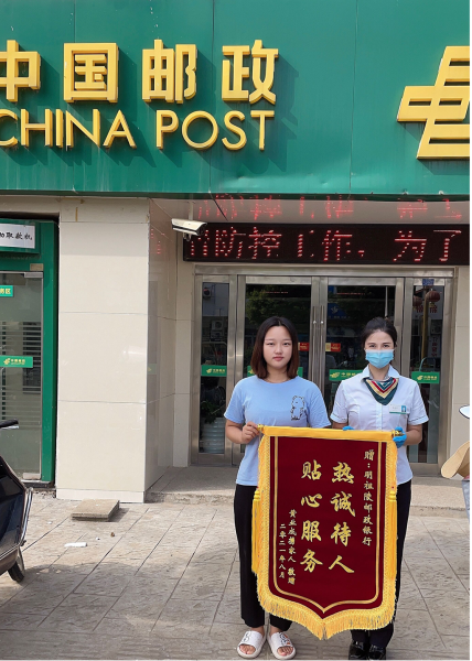 日前,盱眙县分公司明祖陵支局长祝成莉收到一位姑娘送来的锦旗。