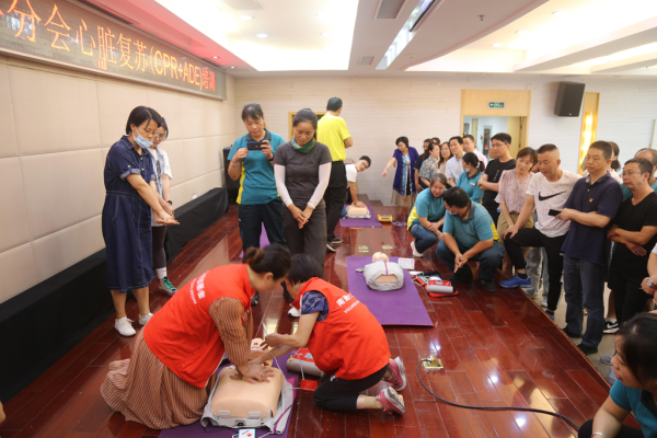 南通市红十字会派出两位有着丰富急救经验的老师进行现场授课,多名红十字志愿者进行现场指导。现场进行了心脏复苏等相关理论知识培训,并进行了闭卷考试与实操训练考核,考核合格人员获得了心肺复苏急救证。