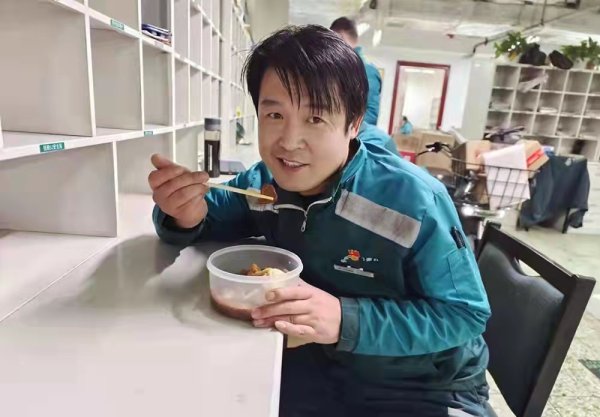 市分公司工会为投递员们送来了可口的饭菜,投递员们吃着炖肉、鸡腿、茄子、凉菜和水果,喝着鲜香的鸡汤,拍拍胸脯说:“太饱了、干劲更足了!在领导的关怀下、在邮政温喛的大家庭中,一定会全力以赴,打胜双十一这场硬仗,为邮政增光添彩!“(北京邮政工会)