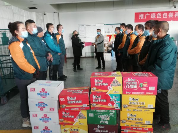 一年一度的“双十一”邮件处理高峰期如期而至,伴随着立冬的一场大雪,鄂尔多斯的气温骤降,一夜之间从温暖的初秋跨越到了冰天雪地的隆冬。天冷人心不能冷。11月11日鄂尔多市邮政分公司党委委员、工会主席李春霖、寄递事业部常务副总贺国清一行代表市分公司党委、工会,上午对寄递事业部网路运营中心,下午对铁西普服投递部和铁西揽投部进行了慰问,为他们送去了慰问金和方便面、火腿肠、卤蛋等慰问品。