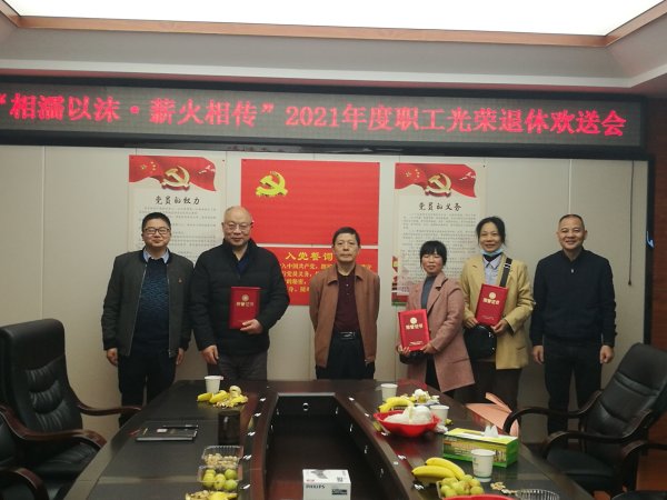 11月19日上午,一场温馨的“相濡以沫 薪火相传 2021年度职工光荣退休欢送会”在安化县分公司五楼小会议室举行。在家的分公司领导、综合办、工会负责人和2021年度退休职工参加座谈会。