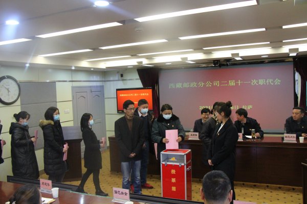 本次会议严格按照有关规定,认真履行民主程序。主、分会场同步以无记名投票方式,替补选举部分工作岗位变动或退休的中国邮政集团有限公司第一届职工代表大会西藏邮政职工代表。最终,王树桥和米玛次仁同志被当选为中国邮政集团有限公司第一届职工代表大会西藏邮政职工代表。