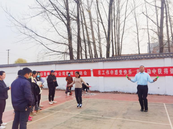 为推进和谐邮政建设,12月10日下午,砀山县分公司干部职工欢聚一堂举办“趣味运动会”活动。 以“暖人心、聚人气、鼓干劲、提士气”为主题,本次比赛项目分为团体赛和个体赛,团体赛有“集体跳绳”、“ 拔河”、“ 趣味保龄球”和“ 接力袋鼠跳”,个体赛有“球行万里”和“ 个人跳绳”。团体赛中,大家心往一处想,劲往一处使,现场欢呼声一浪高过一浪。个体赛中,选手身影矫健,场面紧张而又激烈。