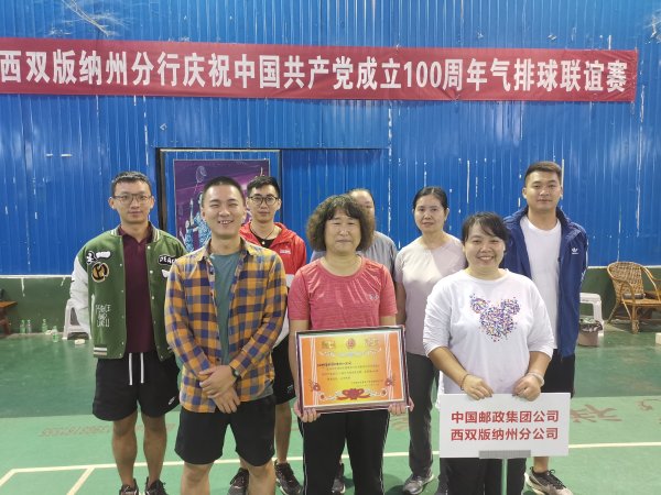 12月11日,邮储银行西双版纳州分行庆祝共产党成立100周年联谊赛在祥龙羽毛球馆举行,本次联谊赛共有7个代表队参赛,版纳州分公司气排球队应邀登场,共派出男女8人参赛。