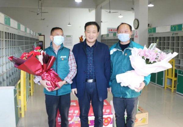 “我代表省分公司党委看望大家,希望你们发挥好传帮带作用!”11月25日,江西省分公司党委书记、总经理强斌一行来到萍乡市分公司安源区金陵投递部,实地察看劳模创新工作室,亲切慰问看望投递员、江西省劳模肖鹏和全国邮政抗疫先进个人李绍萍,并分别送上了鲜花,与劳模先进分别握手并致以亲切的问候,给金陵投递部的投递员们送来了水果、牛奶等慰问品。