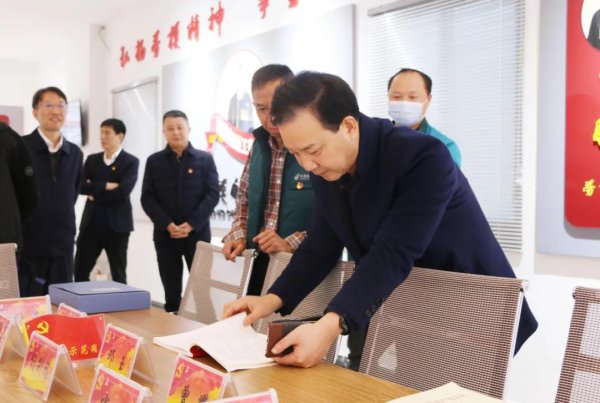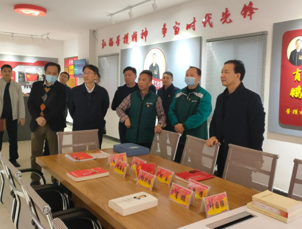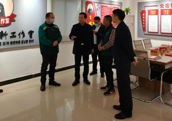 随后,强斌一行参观了肖鹏劳模工作室。金陵投递部经理李绍萍详细介绍了建设肖鹏劳模工作室的初衷,就是要在劳模工作室的基础上不断发扬劳模精神,建立一支互帮互学,团结协作的团队,带出一支立足本职、爱岗敬业的队伍,创造一流的工作业绩和工作效率。同时,他还向强斌详细介绍了肖鹏的师父——全国劳模曹罗生的一生。强斌在劳模工作室桌上摆放的《江西邮政好故事》中翻看了李绍萍的先进事迹《平凡岗位上的逆行者》,对他的抗疫事迹大加赞赏,希望李绍萍同志继续发扬新时代的劳模精神,不断创新,无私奉献。