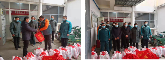 1月27日,睢宁县总工会副主席朱徐一行莅临睢宁邮政分公司城区投递部,看望慰问春节期间奋斗在一线的邮政投递人员,为大家送来了春联、口罩、毛巾、肥皂等慰问大礼包,让一线职工切身感受到工会组织的温暖。