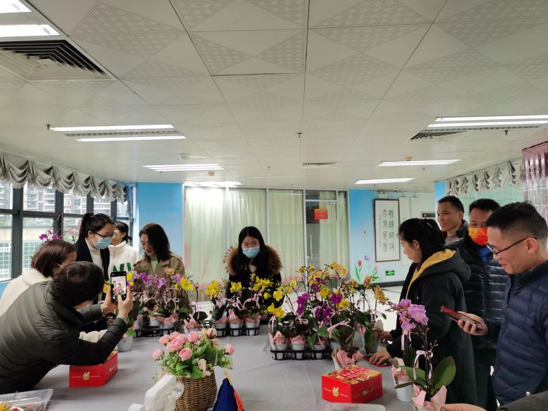 工会领导致辞,职工挑选兰花,生日歌音乐响起,过集体生日的职员们纷纷打开手机“手电筒”,高举着手机,开心地围绕会场载歌载舞,共同分享、庆祝这一刻的快乐与美妙。暖暖的爱意,仿佛驱除了窗外阵阵严寒,温暖着在场的处处心田。