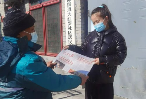 精心选派的服务两会工作人员在专用区争分夺秒分发报纸