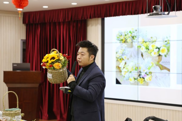 3月8日上午,在一片芬芳的花儿世界中, 插花艺术创作拉开帷幕。 活动特邀中插协高级花艺师李政超老师从花艺基础知识、花艺色系搭配、花艺制作解析等方面,用各种鲜花向大家细致地讲解了各类花型和每种插花表达的意境。