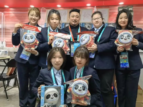 3月8日,国家体育场临时邮局的女员工们刚刚进入临时邮局办公区,一排萌萌的冰墩墩早已经在此静候她们的到来。当女神节遇到冰墩墩,几名服务人员分外激动,她们表示将更加用心做好各项邮政服务,向各界展现出邮政人青春、靓丽的最美形象。(北京邮政工会)