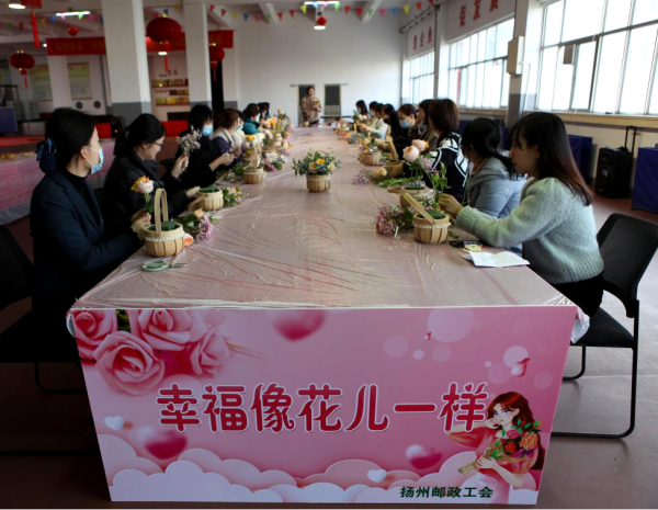 浪漫总是在三月,伴着春天的脚步,国际劳动妇女节也温情将至,为丰富女员工的文化生活,体现对女员工的关爱,扬州邮政工会提前向女员工们送上最温馨的节日祝福,并开展“幸福像花儿一样”花艺蛋糕DIY活动。