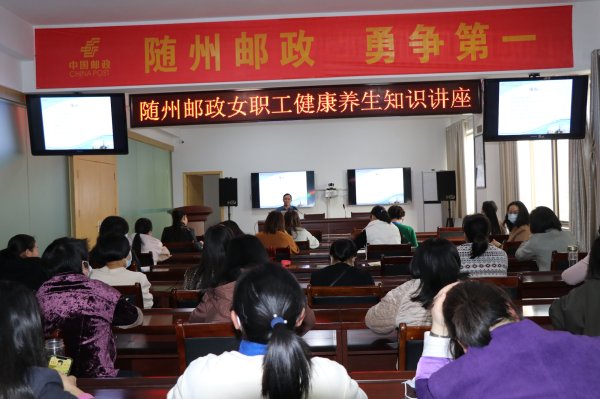 为关爱公司女职工身心健康,增强女职工自我防范和自我保健能力,3月10日下午,市邮政工会举办了女职工健康养生知识讲座,特邀请市中心医院中医科刘毅主任为大家授课,市分公司各部室女职工共40余人参加了本次活动。
