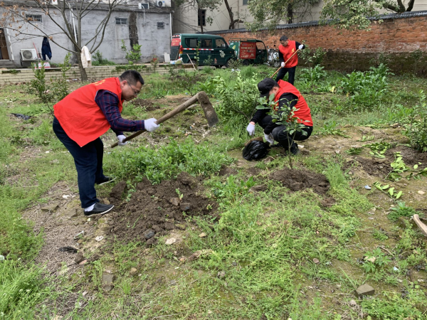 当天上午,公司领导与志愿者们一起挥锹铲土、扶苗填坑……在植树现场,大家三五成群,各司其职,干劲十足,合力栽下了一棵棵树苗,处处都呈现出一派热火朝天的忙碌景象。