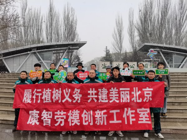 3月18日下午,海淀区分公司康智创新工作室在海淀公园开展义务植树尽责抚育活动。