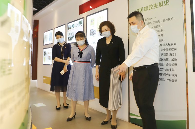 陈以霜主席参观了阳江市分公司党性锤炼基地、工青团活动室、职工之家、妇女之家各活动场地,通过现场交流,进一步掌握和了解邮政改革发展、企业文化建设和女职工岗位建功情况,为阳江市分公司“邮票上的党史”“报纸上的党史”等具有浓郁邮政特色的党史教育形式点赞,并充分肯定了近年阳江邮政发展成效和女职工工作所取得的业绩。