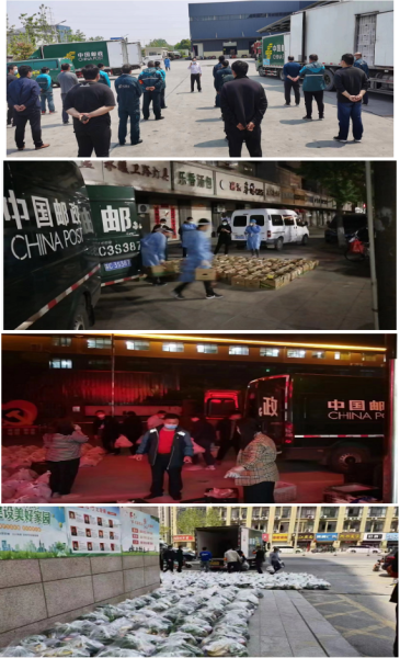 睢宁邮政高度重视本次物资配送工作,第一时间成立了“民生保障队”,由班子成员带队,40余名职工组成,共调配20余辆运输车辆,24小时奋战在“保畅通、保民生”防疫一线。与此同时,睢宁邮政工会积极组织发动,机关127名工作人员自觉参加所属社区“志愿抗疫”工作,主动履行好防疫“守门员、登记员、巡查员”职责,切实展现国企担当。