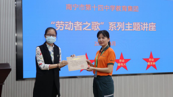 邓艳芬以《风雨兼程——邮路上的平凡人生》为主题,讲述自己从认识邮政、进入邮政、苦练技能,到成为一名营业部负责人、一名“全国五一巾帼标兵”“全国五星级投递员”“全国邮政行业劳动模范”的成长历程。通过马班邮路上的忠诚信使王顺友、“溜索姑娘”尼玛拉木、“雪线邮路”上的幸福使者其美多吉等一个个先进典型人物,救活“死”信、备战“双11”、抗击疫情等一个个亲历亲见的鲜活故事,自行车投递、电动车投递、自动化智能化分拣等一个个不断变迁的工作场景,邓艳芬向南宁市第十四中学师生展示中国邮政多年来改革发展的成果和“人民邮政为人民”的初心和使命,赢得了广大师生的赞誉。