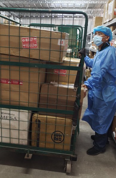 中山市分公司国际件处理专班职工“全副武装”分拣邮件