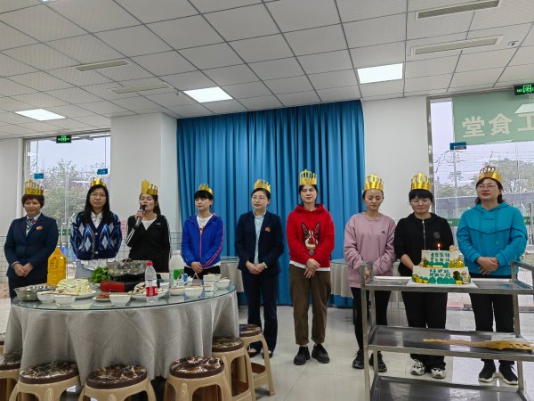 大家像往常一样,在伙食团吃着饭。突然工会干事站起来,拿着话筒说到:“今天突然接到了一个紧急任务,请念到名字的员工到前面来。”大家脸上写满了问号。接着,又分别邀请了这8位员工的好朋友到前面,让他们说说这8位员工最近的工作表现如何。大家都吃着饭,看着热闹。最后,让他们的好朋友蒙着双眼。另外的同事配合着关闭灯光、放着音乐,推着蛋糕出现在他们面前,大家这时悬着的心才落地了。原来是为近期过生日的同事准备了意外惊喜。大家感慨着这么多年了,第一次收到生日的意外惊喜,很感动,同事感恩企业给他们的祝福。