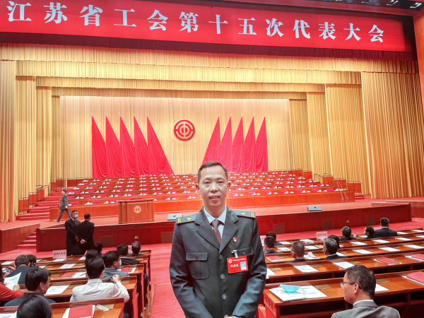 4月17日上午,江苏省工会第十五次代表大会在江苏南京隆重开幕,常州市邮政分公司职工朱新财作为常州市快递行业代表参加此次大会。