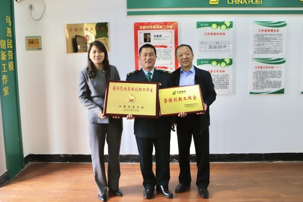 4月25日下午,江苏省邮政工会副主席王军一行来到连云港锦屏支局,与马善民亲切交谈,为马善民劳模创新工作室颁发江苏省总工会授予的“省示范性劳模创新工作室”、中国邮政集团有限公司授予的“劳模创新工作室”奖牌,并代表省邮政工会向马善民劳模创新工作室取得的荣誉表示热烈祝贺。