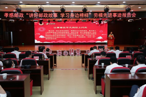 为深入学习宣传贯彻党的二十大精神,弘扬社会主义核心价值观,充分发挥劳模和先进示范引领作用,大力弘扬劳模精神、劳动精神、工匠精神,更好激发广大职工的劳动热情和创造活力,5月5日晚,孝感市邮政分公司工会举办了“讲好邮政故事 学习身边榜样”劳模先进事迹报告会。通过现场+视频会议的形式,全市七个县(市、区)及本部员工,共计1056余人聆听报告。