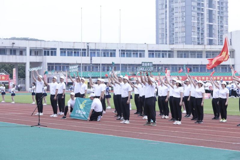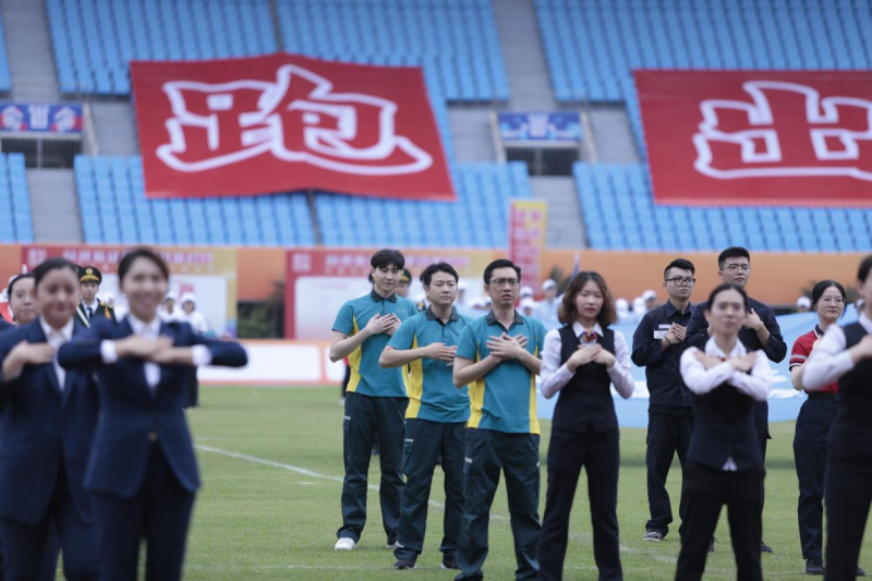 开幕式上燃料烟花瞬间绽放,运动会在现场一片欢呼声中正式拉开帷幕。来自各企业的员工代表为现场观众送上了绝美的视听盛宴:朝气与活力的快闪舞蹈《我们都是追梦人》、惊心动魄的是军体拳《国资雄风》、极具特色的企业风采展示《出发吧!春天》……整场文艺汇演精彩纷呈,高潮迭起。东莞市分公司员工代表为了这次开幕表演,常常利用下班时间集中排练,“能参与到燃爆全场的开幕式表演中,我们觉得付出的一切都很值得!”