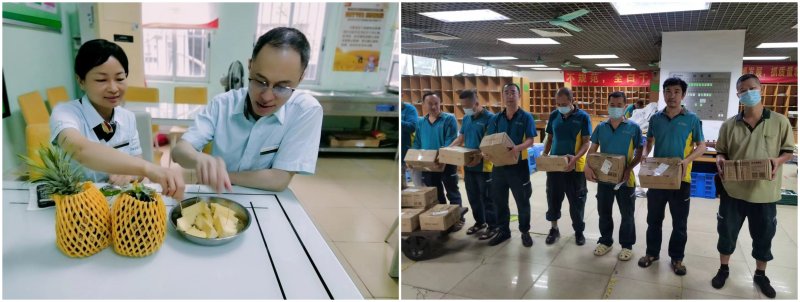 “来一口清香的菠萝,让你的夏天更加美味”。5月正是菠萝成熟时,广州市分公司响应省公司帮扶乡村振兴、强力推进农产品基地建设的号召,为员工们发放了约25000斤“徐闻菠萝”,用带着阳光味道的新鲜时令水果感谢在不同岗位上奋力拼搏的邮政人。