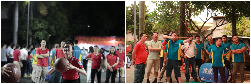 参与活动的员工在快乐投篮、快乐射箭、快乐乒乓球接力三个项目中激烈比拼,每支参赛队伍都有备而来,斗志昂扬。随着篮球“嗖”一下应声入筐,现场时而欢笑雷动,时而掌声热烈,时而惊呼嗟叹;射箭区同样也是一片火热,选手们屏住呼吸、凝神定气,搭箭、瞄准、扣弦、开弓……切磋技艺,一一展示自己的技术;乒乓球接力赛则考验着参赛队伍的团结协作能力,乒乓球滚落、对接失败、以手碰球重回起点等状况都没有打断员工们高涨的兴致,大家脸上仍旧挂着灿烂的笑容,现场观众也深受感染,笑声不断……员工们沉浸在一场场简单而用心的互动游戏中。