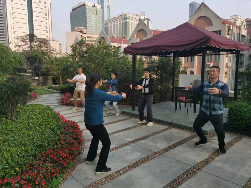 为鼓励员工调控身心、走近自然,为工作、生活蓄积健康且积极的能量,广州市分公司职能部室工会自3月起推出了“今天,你练了吗?”健身活动,每周二早上由工会专人带领员工在职工之家户外小花园习练健身气功八段锦。