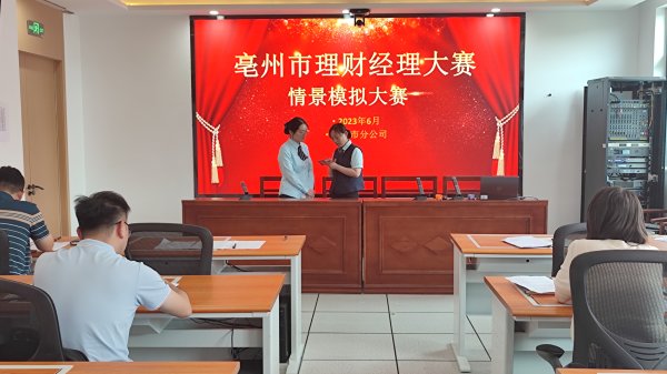 为进一步提升服务质量,更好的服务用户,6月2日,亳州市邮政工会、金融业务分局共同举办了全市理财经理模拟大赛。比赛由市分公司人力资源部牵头,工会协助,金融业务部主办,本着“以赛代训”这一宗旨,经过各县区分公司层层遴选,最终推荐17名优秀理财经理参加比赛。