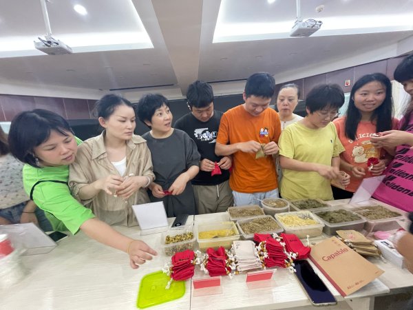 本次活动,上饶市邮政工会邀请到徐氏中医的老师,带领职工们共同动手制作香囊。在老师的指导下,大家精确地把药材放入袋中填充封口,最后将香囊两边的绳子系好。活动现场气氛热烈,职工们热情地向老师请教相关的药学知识。香囊手工制作活动,不仅让大家亲身体验到了做香囊的乐趣,感受到非物质文化遗产和传统节日的魅力,也表达了大家对端午佳节美好的期许和愿望。(江西省邮政工会)