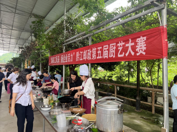 6月19日,黔江邮政工会在濯水老麻庄园举办职工厨艺大赛。来自邮政机关部室、支局网点的“大厨”们展开激烈比拼,大家相互协作,大秀厨艺,摘菜、清洗、切剁,准备工作有条不紊。案板上,手起刀落,物已成型。灶台边,“大厨”们精神饱满,动作娴熟,挥铲舞勺。