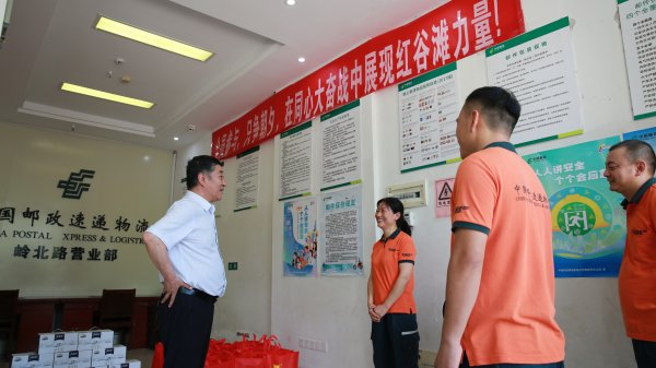 6月28日下午,刘斌赴南昌市分公司开展“送清凉”慰问活动,先后来到了红谷滩区寄递事业部岭北路营业部、西湖区广场营业所,亲切慰问了高温酷暑下依然坚守岗位的一线邮政员工,详细了解他们的生产生活情况,为员工们送上了防暑降温慰问品。刘 斌对一线员工冒着高温酷暑,为邮政事业作出的辛勤劳动和奉献精神给予了高度肯定,叮嘱大家一定要注意自身健康和安全,注意做好防暑降温工作,合理安排作息时间,注重劳逸结合,尤其是揽投人员在户外工作要特别做好安全防护和防暑降温措施,防止中暑事件的发生。