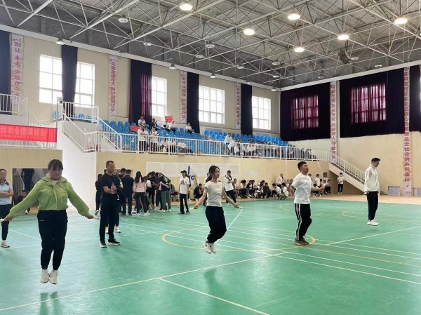 本次比赛设“拔河”、“单摇一分钟跳绳”、“摸石头过河”和“定点投篮”等比赛项目,比赛中我方参赛队伍团结一心、奋勇拼搏,一次又一次的挑战自我、超越自我,为自己、为团体书写一个又一个辉煌。