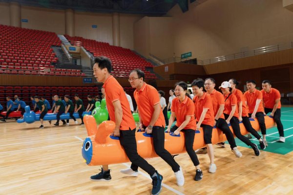 趣味健身运动会不同于传统运动会,比赛项目参与门槛低,体现重在参与;项目设计互动热闹,体现重在趣味。运动会吸引了市本100余名员工参加。活动通过抽签方式,将若干个团队分成ABC三个大组。各团队依次完成旱地龙舟、无敌风火轮、车轮滚滚、多向拔河四项团体合作游戏。团队中,部门经理、机关管理人员、技术员、营销员纷纷上阵。有的负责组织协调,有的负责布局布阵,有的负责落实执行,有的负责后勤保障。大家群策群力、齐心协力,高质量、高标准地完成每一个竞赛项目,把比赛一次次推向更高的热潮。