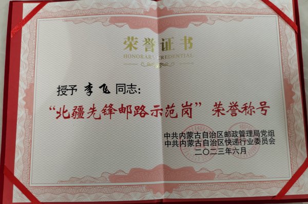 日前,内蒙古自治区邮政管理局和内蒙古自治区快递行业委员会公布“北疆先锋邮路”名单,鄂尔多斯市达拉特旗分公司寄递事业部获评“北疆先锋邮路”,鄂尔多斯市分公司寄递事业部网路运营中心车队李飞同志获评“北疆先锋邮路示范岗”荣誉称号。