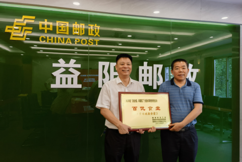 近日,湖南省总工会、湖南省市场监督管理局、湖南省卫生健康委员会联合命名全省86家企业食堂为2022年度湖南省“百优食堂 ”,益阳邮政职工食堂光荣上榜。7月19日,益阳市总工会张享敦副主席一行到益阳市邮政公司授牌,市公司工会主席潘远征参加授牌仪式。