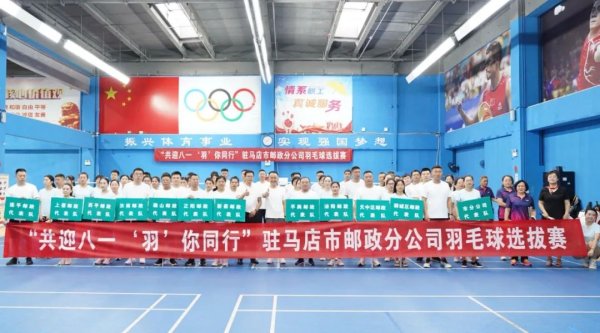 为积极备战全省邮政企业员工羽毛球比赛,提高邮政员工身体素质和健康水平,扬团结、拼搏、进取、协作精神,更好地展示驻马店邮政的良好精神面貌,7月27日,八一前夕,“共迎八一 ‘羽’你同行”驻马店市邮政分公司羽毛球选拔赛在驻马店市工人文化宫举行。