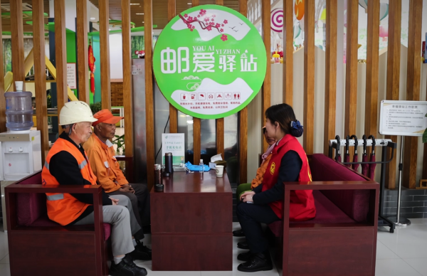 “平时起得早,遇到雨雪天,没有地方待,幸好咱们邮政公司建了这个幸福驿站,对于我们这些环卫工,不管热天、冷天,都有关心和照顾,俺们表示感谢!”宿州市区淮海路的环卫工人刘大姐一边在驿站的茶歇处坐着休息,一边和驿站的志愿服务人员聊着。