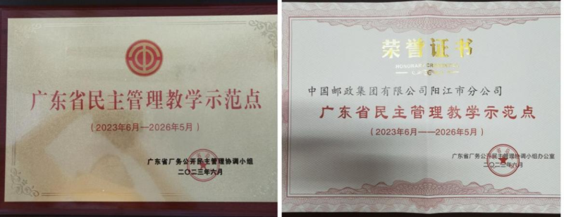 近日,广东省厂务公开民主管理协调小组办公室发布《关于确定全省民主管理教学示范点和职工代表培训师名单的通知》,阳江市分公司被广东省总工会授牌命名为“广东省民主管理教学示范点”。