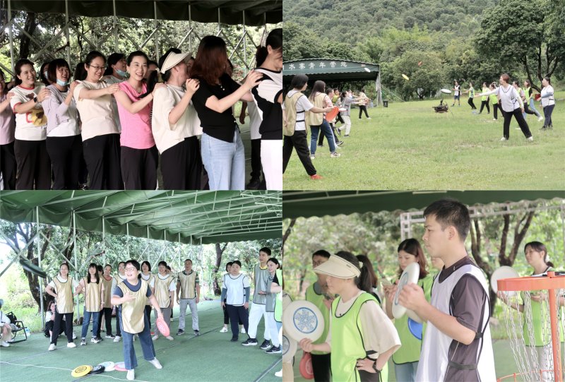 在教练的引导下,员工们进行了热身活动。分组设计队名、展示队歌和队型后,员工们随即展开“盘感、传接盘练习”“飞盘飞桶”“飞盘九宫格”“飞盘投篮”“躲避飞盘赛”等练习项目,营造出良好的团队氛围。比赛环节中,各组员工紧密协作,赛场上瞬息万变,不到最后一刻无法断定输赢,比分你追我赶,全场气氛达到高潮。