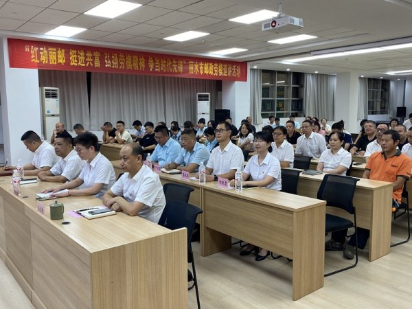 8月29日晚上,丽水市分公司开展“红动丽邮 挺进共富 弘扬劳模精神 争当时代先锋”劳模宣讲活动。丽水市分公司领导班子、班组长及以上管理人员、业务骨干、党员、团员、职工代表等共120余人参加此次活动。