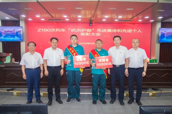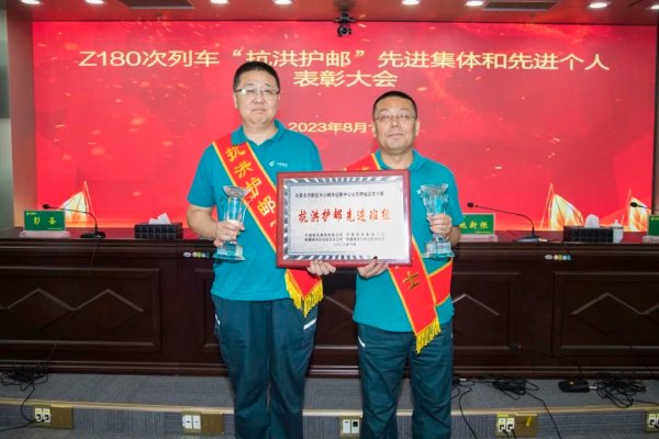 8月10日下午,中国邮政集团有限公司新疆维吾尔自治区分公司中国邮政集团工会新疆维吾尔自治区委员会召开Z180次列车“抗洪护邮”先进集体和先进个人表彰大会,对在7月29日至8月2日北京历史罕见特大暴雨灾害中,全力护送邮件安全抵京、积极协助列车组保障旅客人身财产安全的火车押运班组进行表彰,授予乌鲁木齐邮区中心邮件运输中心火车押运北京6班“抗洪护邮先进班组”荣誉称号,授予押运员夏勇、马宏钧“抗洪护邮卫士”荣誉称号,并给予每人10000元奖励。