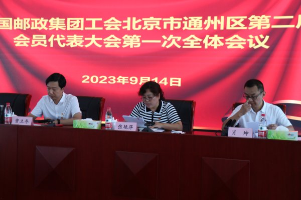 9月14日,中国邮政集团工会北京市通州区第二届会员代表大会第一次全体会议胜利召开。通州区总工会党组成员、副主席张艳萍同志出席大会,大会应到45名,实到41名会员代表。大会听取和审议了区分公司工会第一届题为《立足新时代 谱写新篇章 奋发推进通州邮政工会工作高质量发展》的工作报告及工会财务工作报告和经费审查委员会工作报告。选举了新一届工会委员会委员7名和经审委员会委员3名。同时,新选举产生的“两委”分别召开了第一次全体会议,选举了新一届工会委员会主席和经费审查委员会主任,协商产生了第一届女职工委员会并选举产生女工主任。