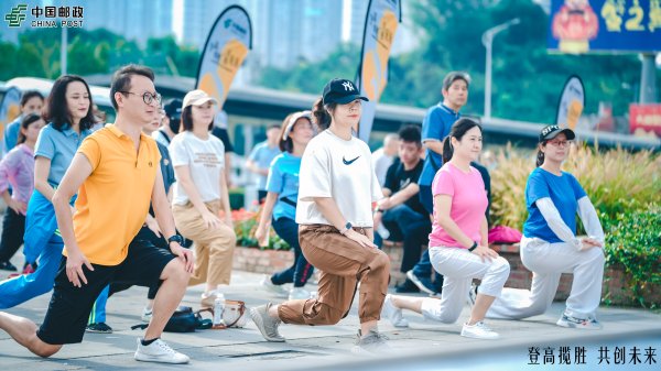 “大家伸伸手,弯弯腰,压压腿。”9:30,在健身教练带领下,来自省分公司、邮储银行省分行机关的350多名员工,一起做起了热身操,场面蔚为壮观。
