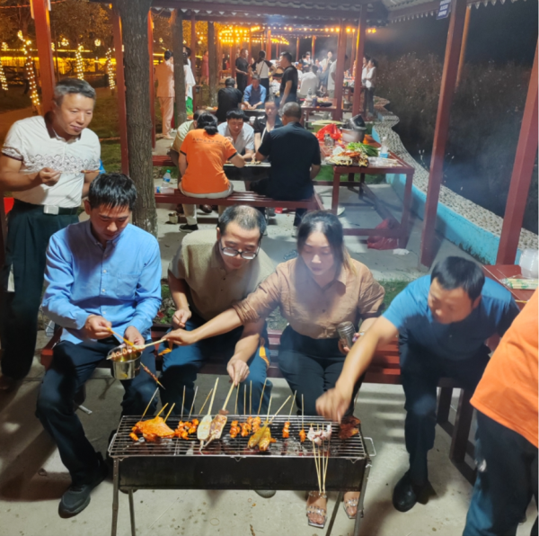 游戏结束后,烧烤活动开始。10余个烤炉全部开启,每个烤炉前都围着一些员工,有调火的,有调味的,香味弥漫,烤肉和烤肠让人垂涎欲滴。大家游走在各个烤炉间品尝着美味,每次烤熟后马上就一抢而空。