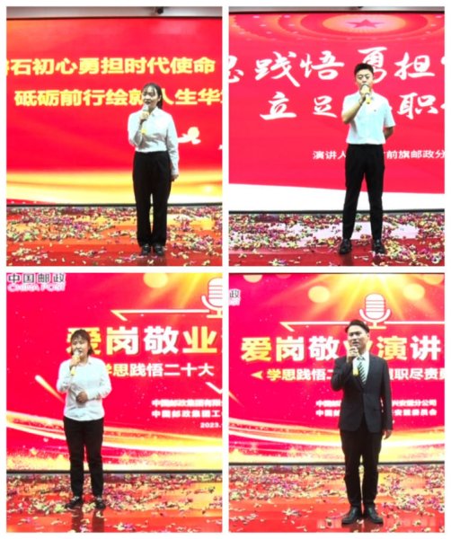 为更好地推进兴安盟邮政企业文化建设,丰富职工业余文化生活,增强广大职工使命感、责任感和自豪感,10月7日,兴安盟邮政分公司和邮政工会联合举办“学思践悟二十大 履职尽责勇担当”爱岗敬业主题演讲比赛。